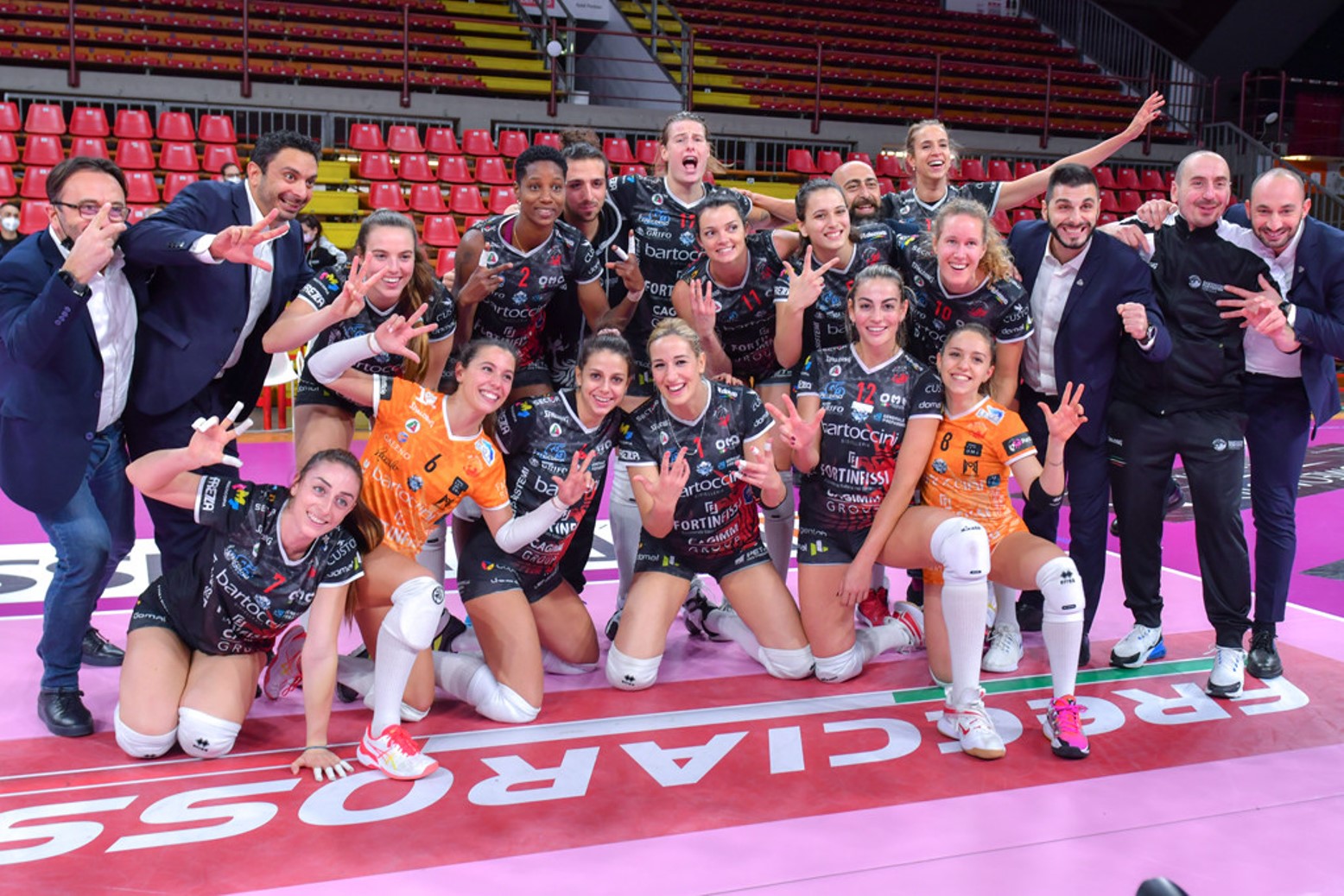 BARTOCCINI FORTINFISSI PERUGIA: Havelkova 10, Koolhaas 12, Ortolani 16, Carcaces 4, Aelbrecht 10, Di Iulio 5, Cecchetto (L), Angeloni 7, Mlinar 5, Agrifoglio 1. Non entrate: Casillo, Rumori, Scarabottini. All.: Mazzanti