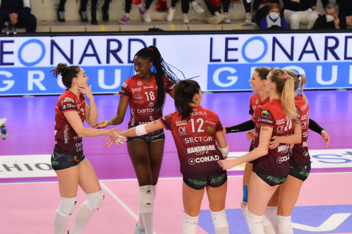 Bartoccini-Fortinfissi Perugia: Bongaerts, Nwakalor, Bauer, Melandri, Havelkova, Guerra. Libero: Sirressi.