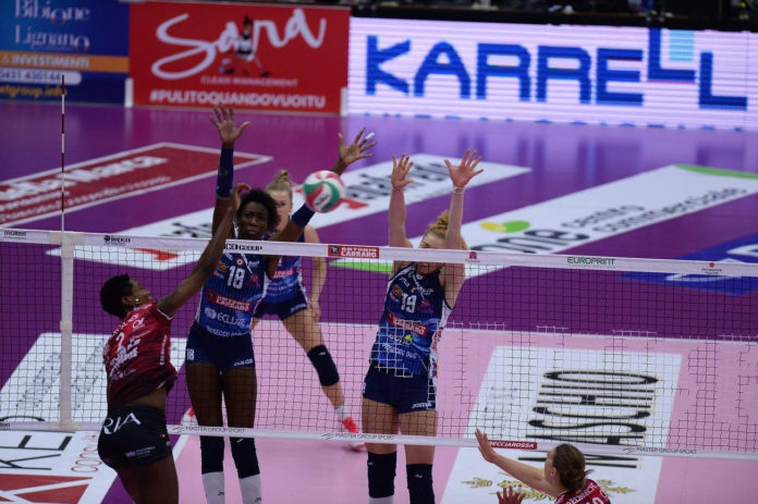MOCO VOLLEY CONEGLIANO: Adams 14, Fahr 13, Egonu 26, Hill 10, De Kruijf 10, Wolosz 8, De Gennaro (L), Caravello. Non entrate: Gennari, Gicquel, Omoruyi, Folie (L), Butigan.