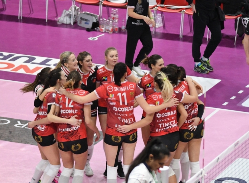 La Bartoccini Gioiellerie Perugia si impone anche a Sassuolo. Nella settima giornata del girone di ritorno, le ragazze di Fabio Bovari espugnano per 1-3 (22-25, 21-25, 25-23, 17-25) il Pala Canovi e mantengono saldamente la testa della classifica. Una gara che ha sempre visto le magliette nere condurre il gioco a parte una lieve flessione nel terzo parziale quando, nonostante 5 punti di vantaggio (12-17), le perugine si sono un po’ rilassate, consentendo alle padrone di casa di aggiudicarsi il set. Ora le attendono due gare fondamentali al PalaBarton: domenica 13, quarti di finale di Coppa Italia contro l’Itas Città Fiera Martignacco e domenica 20 l’ultima gara della Regular Season contro la Delta Informatica Trentino, seconda in classifica.