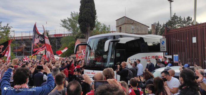 I tifosi del Grifo hanno risposto presente all’appello della Curva Nord. In centinaia si sono presentati alle 18 di venerdì 21 maggio davanti al cancello di ingresso dello stadio Renato Curi per ‘caricare’ la squadra in vista del derby contro la Ternana. Cori e bandiere per testimoniare l’affetto a Caserta e ai suoi ragazzi e per ringraziarli della recente promozione in serie B.
