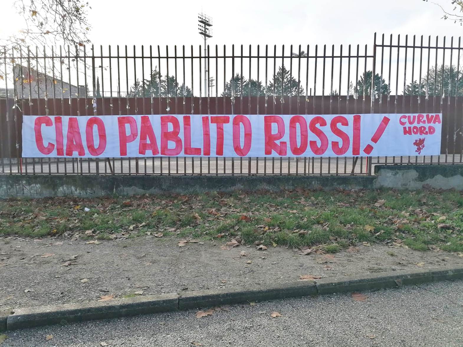 I gruppi del tifo organizzato hanno affisso uno striscione sui cancelli del ‘Renato Curi’ dove si legge “Ciao Pablito Rossi!”.