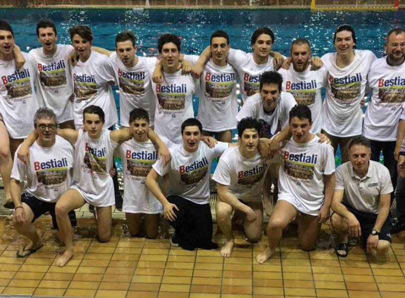 Una stagione da assoluti protagonisti quella dei ragazzi della Serie C della Libertas Rari Nantes Perugia che, grazie alla vittoria al cardiopalma contro la Jesina per 7-6, hanno conquistato la certezza matematica del primo posto nel girone umbro-marchigiano e la promozione diretta in Serie B. Grandi sono stati i festeggiamenti per la conquista di questo prestigioso traguardo al quale la società perugina ha fortemente puntato sin da subito anche con l’ingaggio dell’esperto tecnico di Fiume Ugo Marinelli. Tuffo in acqua per tutti, anche per staff tecnico e dirigenziale. Ora le ultime partite rimangono una pura formalità da sbrigare nelle quali la Libertas vorrà comunque ben figurare per onorare fino alla fine il campionato e per chiudere alla grande un annata ricca di soddisfazioni.