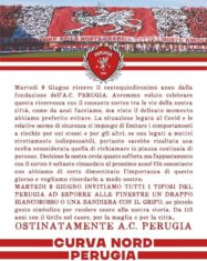 La Nord: “Niente corteo per il 9 Giugno ma drappi e bandiere alle finestre”. Esce un comunicato del tifo organizzato riguardo il 115esimo anniversario dalla nascita dell’A.C. Perugia