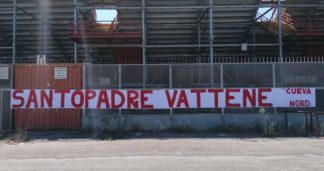 “Santopadre vattene” – questo recita uno striscione appeso ai cancelli della Curva Nord dai gruppi del tifo organizzato.