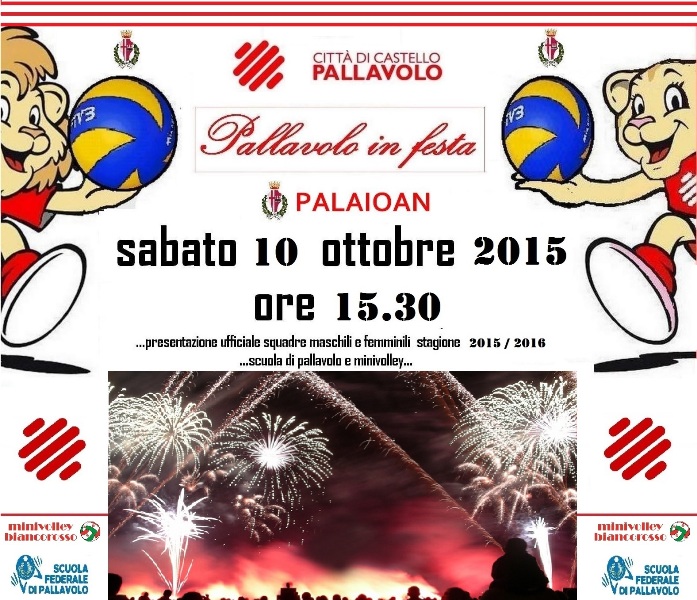 Sabato 10 ottobre 2015 alle ore 15.30 al PalaAndreaJoan di Città di Castello ci sarà la presentazione di tutte le squadre della società tifernate. Sfileranno tutte le squadre ed i loro allenatori, la società in questa stagione parteciperà a 26 campionati, dagli atleti delle categorie maggiori ai festanti bambini del minivolley biancorosso. Previsti circa 450 atleti, oltre ad allenatori, dirigenti, autorità e genitori che potranno incoraggiare il movimento partecipando ed applaudendo le squadre. Sarà una manifestazione sobria nel suo apparire ma ricca di valori e significati, allegra e festosa come deve essere, la pallavolo Città di Castello si sta impegnando in modo fattivo e propositivo per rilanciare tutto il movimento ai livelli che competono ad uno dei sodalizi più importanti della Regione Umbria e che rappresenta il 10% dei tesserati complessivi.