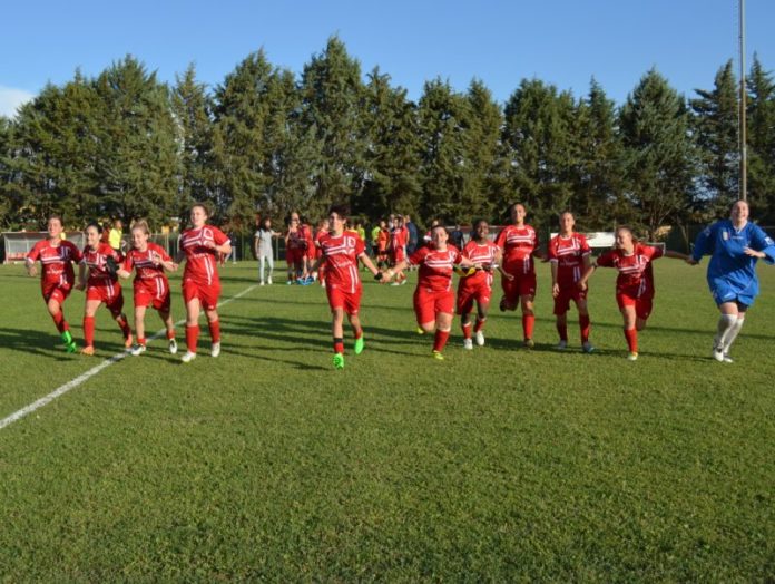 Tre vittorie su tre partite, diciassette gol all’attivo ed uno solo subito: sono questi i numeri della Primavera della Grifo Perugia che, imponendosi nella terza di campionato per 5-1 in casa delle toscane del Florentia, si trova meritatamente in prima posizione. La sfida contro il Florentia è stata fondamentalmente a senso unico, con le avversarie in grado di trovare il gol della bandiera solo nel finale dopo una disattenzione delle biancorosse. Il gol che sblocca la partita a favore della Grifo arriva al 17’ ad opera di Baldassarri; le ragazze di Vania Peverini non si accontentano e decidono di chiudere il match prima della fine della prima frazione. Viola al 40’ e ancora Baldassarri al 45’ minuto fissano il risultato sul 3-0. Il copione del secondo tempo non cambia visto che Giulia Piselli firma il 4-0 dopo appena un minuto di gioco. Da lì è pura accademia per le Grifoncelle che arrotondano con una pregevole marcatura di Franciosa. Le toscane si fanno notare solo all’ 81 con il gol della bandiera di Rossi dopo una leggerezza della difesa perugina. Tre punti importantissimi che permettono alle biancorosse di arrivare al “big match” della prossima settimana contro il Castelfranco in prima posizione.