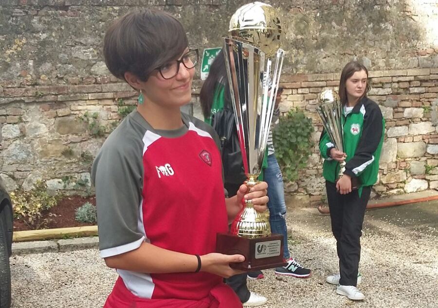 Giornata importante quella di domenica 18 settembre per la Grifo Perugia: la società della Presidente Valentina Roscini è stata premiata per il trionfo della Primavera nel campionato regionale di Serie C Csi conclusosi nel maggio scorso. Una vittoria avvalorata anche dal fatto che le ragazze della Primavera biancorossa hanno affrontato formazioni dall’età media sicuramente più elevata e da una relativa maggiore esperienza nei campi da gioco. La cerimonia di gala, che ha avuto luogo presso la Sala Sant’Anna di Perugia, ha visto anche la partecipazione del tecnico della Primavera della Grifo Vania Peverini, del vice-presidente Lamberto Roscini e di una piccola delegazione delle atlete vincitrici del torneo Csi composta da Sara Mariotti e Asia Cipiciani. Così la Presidente Roscini ha commentato la kermesse di premiazione: