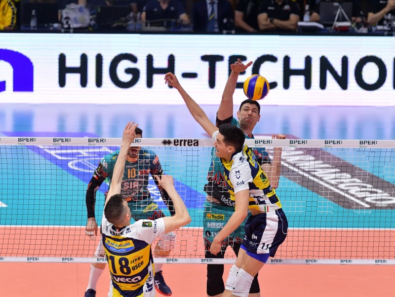 LE CIFRE – MODENA: 25 b.s., 7 ace, 38% ric. pos., 24% ric. prf., 54% att., 10 muri. PERUGIA: 19 b.s., 11 ace, 46% ric. pos., 23% ric. prf., 53% att., 6 muri.