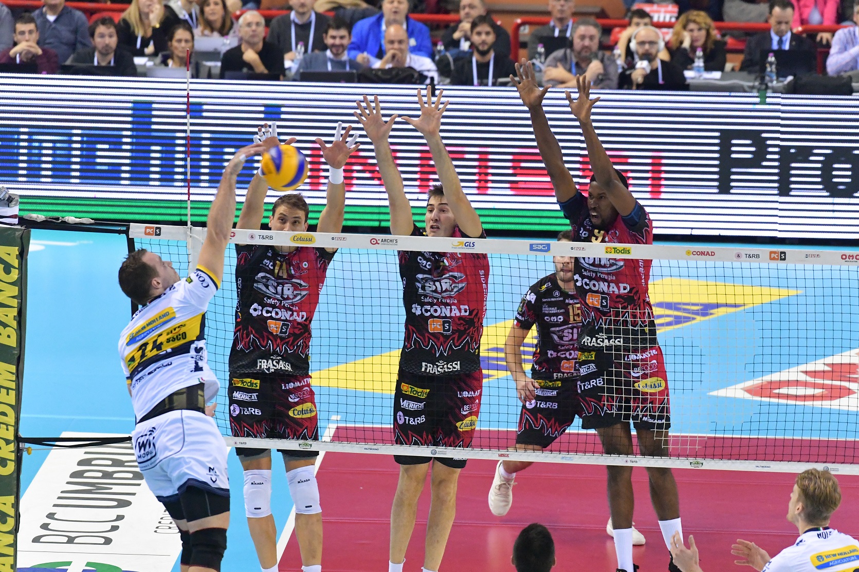 SIR SAFETY CONAD PERUGIA: De Cecco-Atanasijevic, Podrascanin-Ricci, Leon-Lanza, Colaci libero. All. Bernardi.