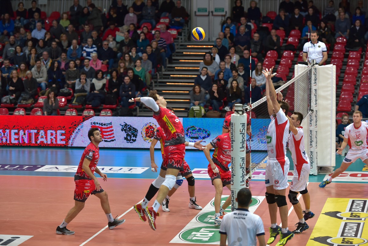Sette annunciati per Kovac con Fromm-Russell coppia di schiacciatori. Giuliani presenta invece Tavares-Luburic diagonale di posto due e Perrin in coppia con Zlatanov in banda, Papi e Lampariello i liberi ad alternarsi. Subito cinque punti per Atanasijevic (4-5). Vantaggio Piacenza dopo l’invasione del muro bianconero (8-7). Altri due per i padroni di casa (10-7). Fallo (dubbio in verità) fischiato a Tavares (11-10). Torna in parità il set grazie al servizio di De Cecco (13-13). Doppio vantaggio per Perugia grazie all’ace di Atanasijevic (16-18). Si va di cambio palla in cambio palla con Russell che mantiene il break di vantaggio (19-21). È l’ace di Tavaser a rimettere tutto in equilibrio (21-21). È il mani out di Fromm a portare la Sir al set point (23-24). Luburic porta il parziale ai vantaggi (24-24). Ancora l’opposto serbo di Piacenza (25-24). Il muro di Tavares su Fromm chiude (26-24). Sull’onda set set vinto i padroni di casa partono a mille (3-0). Birarelli ed Atanasijevic accorciano (3-2), il diagonale di Fromm impatta e l’ace di “Mamba”, con la collaborazione del nastro, firma il sorpasso (3-4). Due di Buti e maniout di Russell (5-8). +4 Perugia dopo l’ace di De Cecco (7-11). Zlatanov accorcia (9-11), gli errori di Tencati e Luburic ristabiliscono il gap (9-14). Due per Fromm (10-16). Torna sotto la LPR con il muro di Luburic (17-20). Birarelli ed Atanasijevic fanno ripartire i Block Devils (17-22). Fuori Luburic, set point Perugia (18-24). Chiude Atanasijevic (19-25). Parte ancora meglio Piacenza in avvio di terzo set con Tencati incisivo a muro (2-0). Parità dopo l’errore di Luburic (4-4). Fuori anche Russell (6-4). Confusione nella metà campo bianconera (7-4). Luburic mantiene inalterato il distacco (11-8). Rottura prolungata dei Block Devils con l’errore di Russell che porta il tabellone sul 14-9 LPR. Due di Atanasijevic ed uno di Russell (14-12). Nuovo break dei padroni di casa con Perrin e l’ace di Zlatanov (17-12). Ace per Buti (17-14). Ancora Perrin ed il muro di Tencati (20-14). Perugia pessima nei propri ottantuno metri quadrati (23-17). Il muro di Luburic chiude un parziale praticamente non giocato dai Block Devils (25-18). C’è Kaliberda per Fromm in avvio di set. Si procede in equilibrio. Il contrasto vincente di Perrin dà il vantaggio a Piacenza (6-5). Out la pipe di Perrin, poi ace di Birarelli e poi contrattacco per Atanasijevic (8-11). Mette l’ace “Magnum” (9-13), imitato poco dopo da Zlatanov (11-13) ed anche da Kohut (13-14). Perrin pareggia con un bel contrattacco (14-14). Mette il naso avanti la LPR con il muro di Luburic su Atanasijevic (17-16). Fuori Zlatanov e Perrin (17-19). Scarica la rabbia Atanasijevic con l’attacco dalla seconda linea (20-23). È sempre l’opposto serbo di Perugia a mandare il match al tie break (22-25). Sono la diagonale stretta di Russell e l’ace di Birarelli a dare il via alle ostilità (0-2). Kaliberda mantiene il +2 (3-5). Muro di Russell su Luburic (5-8). Si cambia campo con Perugia avanti di tre. Al rientro è Atanasijevic ad andare a bersaglio (5-9). Ancora “Magnum” in contrattacco (7-12). L’errore al servizio di Perrin porta Perugia al match point (9-14). Accorcia Luburic (11-14). Chiude nuovamente Atanasijevic (11-15).