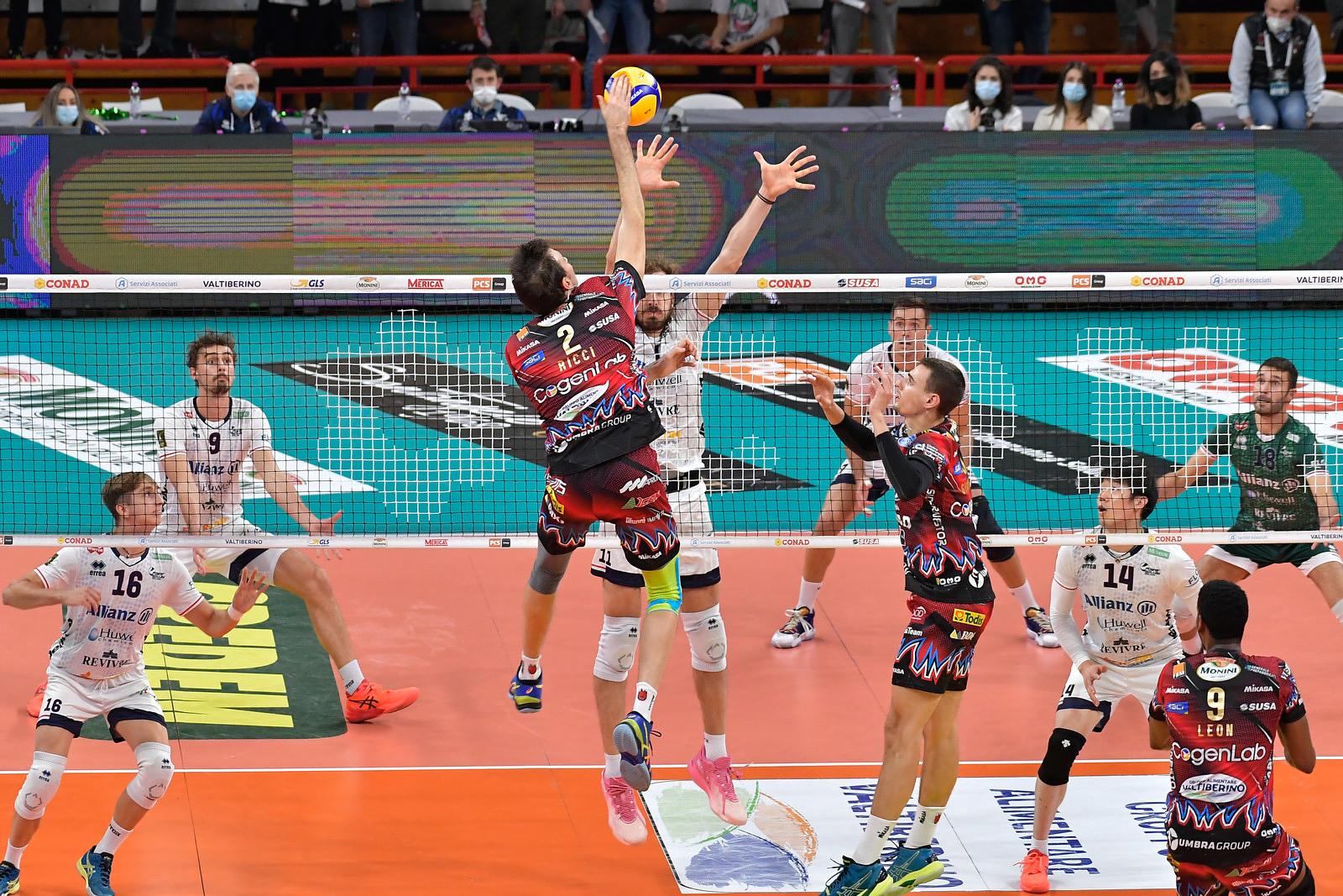 La Sir Safety Conad Perugia, dopo aver sottoposto lunedì mattina gli atleti Simone Giannelli e Fabio Ricci ad un tampone molecolare (i due erano rientrati a Perugia prima della gara di Trento), comunica la positività al Covid-19 di entrambi i giocatori che presentano lievi sintomi e sono stati immediatamente posti, come da protocollo, in isolamento fiduciario.