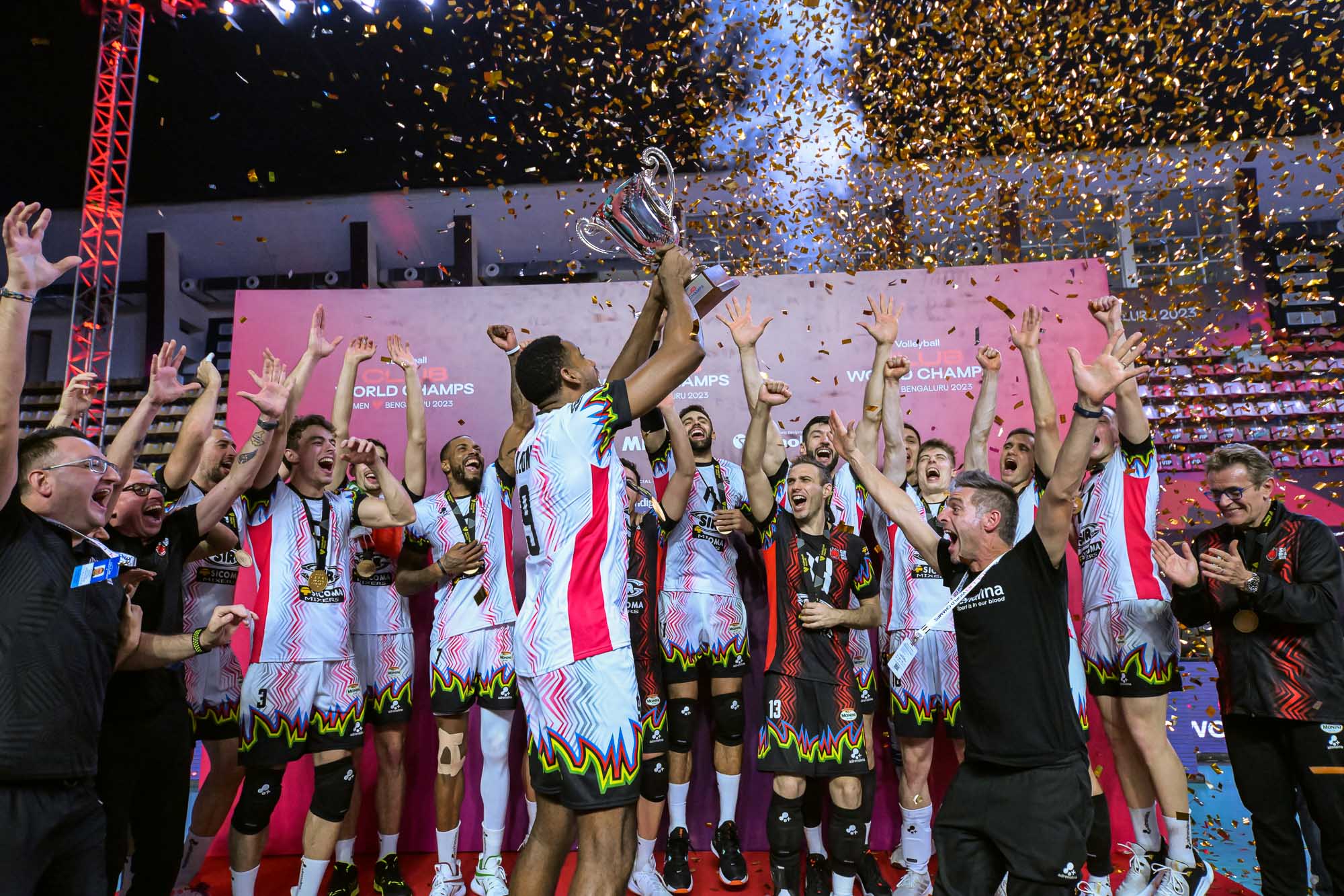 La Sir Susa Vim Perugia sconfigge l’Itambè Minas nella finale del Mondiale per Club a Bangalore in India, bissa il titolo conquistato lo scorso anno in Brasile e si innalza ancora sul tetto del Mondo!
