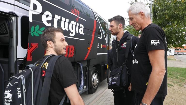 Gli uomini di Sirci sono partiti con il nuovo fiammante pullman bianconero in direzione Civitanova Marche. Sabato e domenica sarà in palio il primo trofeo stagionale, la Del Monte® Supercoppa Italiana. Perugia, alla sua seconda partecipazione nella manifestazione dopo la sconfitta in finale lo scorso anno con Modena, è una delle quattro protagoniste insieme alle altre big Cucine Lube Civitanova (squadra ospitante e campione d’Italia in carica), Azimut Modena e Diatec Trentino.