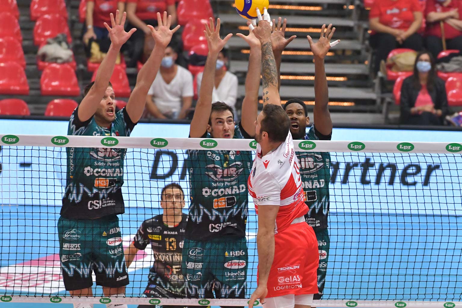 SIR SAFETY CONAD PERUGIA: Travica-Atanasijevic, Ricci-Solè, Leon-Plotnytskyi, Colaci libero. All.: Heynen