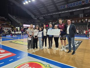 In occasione di gara 3, nell’ambito della conclusione del progetto promosso e realizzato dalla Provincia di Perugia “I tuoi sogni viaggiano con te! Guida in sicurezza”, prima del fischio di inizio, il club del presidente Gino Sirci ha devoluto un assegno di 2500 euro all’associazione Familiari e vittime della strada. Presente il presidente Massimiliano Presciutti.