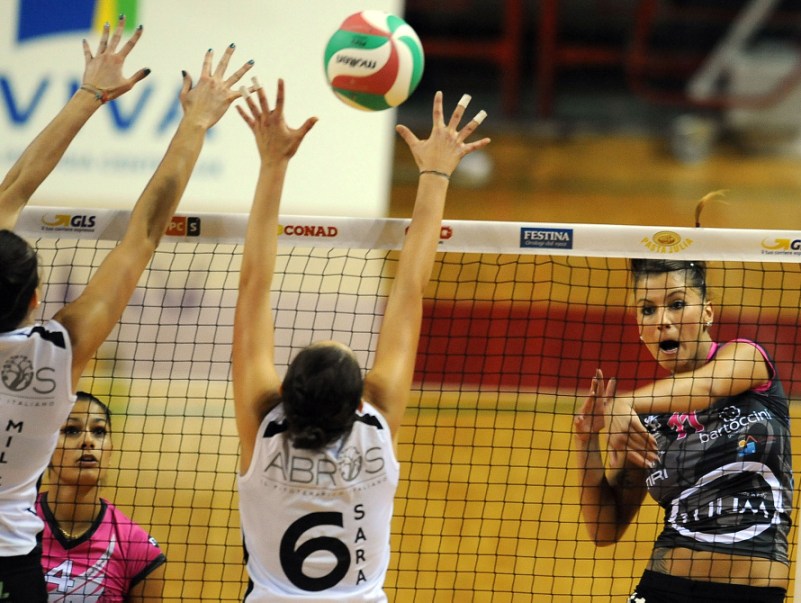 L’andamento a due velocità non accenna a cambiare per la Tuum Perugia che lontano dal proprio pubblico viene ancora fermata e trova la terza sconfitta del campionato. In virtù dei risultati del settimo turno di serie B1 femminile la classifica non peggiora di molto ma l’occasione proposta dallo scontro al vertice non viene sfruttata e la distanza dalla vetta aumenta. Una prestazione poco convincente contro la Battistelli San Giovanni in Marignano che con questo ulteriore successo, settimo di fila, riesce a balzare al comando del girone e vede coronati i suoi sforzi. La gara comincia con le padrone di casa che provano la fuga con Tallevi ma Puchaczewski tiene bene il passo (11-11), anche Saguatti cerca lo strappo ma Barbolini è pronta a ricucirlo (19-19), sul finale a fare la differenza sono gli affondi di Ferretti che mandano uno a zero le marignanesi. Dopo il cambio di campo è capitan Cruciani a reggere l’urto delle romagnole che colpiscono duro in attacco (10-10), qui si registrano alcune incertezze, saranno dieci i punti regalati, e le incursioni di Spadoni fanno progressivamente crescere il divario portando in breve al raddoppio. Nella terza frazione Catena viene schierata da opposta e Ragnacci al centro, sono i loro affondi a dare per la prima volta il comando alle magliette nere che tentano di approfittare del buon momento (15-17), nel momento migliore si registra un rilassamento che permette alle locali di piazzare cinque punti consecutivi, le perugine non demordono e fanno sentire il fiato sul collo ma sul 24-23 l’attacco di Tallevi piega loro le gambe.