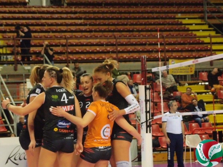 Bovari schiera Tomic opposta a Mazzini, Repice e Zuleta centrali, Lotti e Pascucci schiacciatrici, Giampietri libero. Dall’altra parte della rete Bovo e Brutti centrali, Marcolina opposto, Kosareva e Gomiero a posto quattro, Giroldi in regia, Pericati(L). Bertolini nel terzo parziale sceglie Fiocco per Bovo, mentre nel quarto e quinto parziale Pamio per Kosareva.
