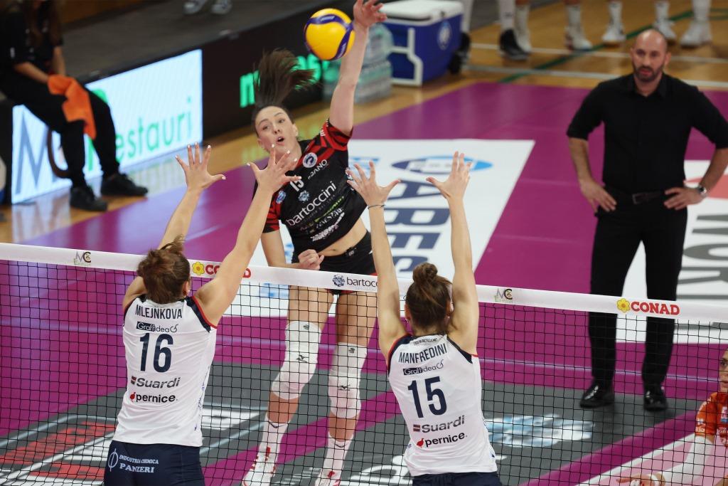 Volley Bergamo: Evans – Piani, Strubbe – Manfredini, Montalvo – Mlejnkova, Armini (L). All.: Parisi. Ass.: Cervellin