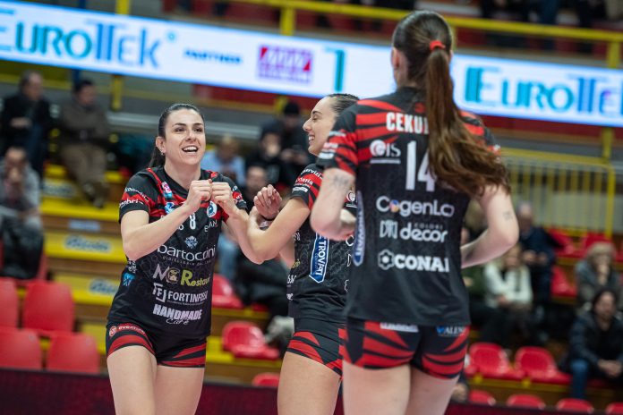 Cda Talmassons Volley: Eze – Storck, Kocic – Botezat, Shcherban – Strantzali, Ferrara (L). All.: Barbieri. Ass.: Parazzoli