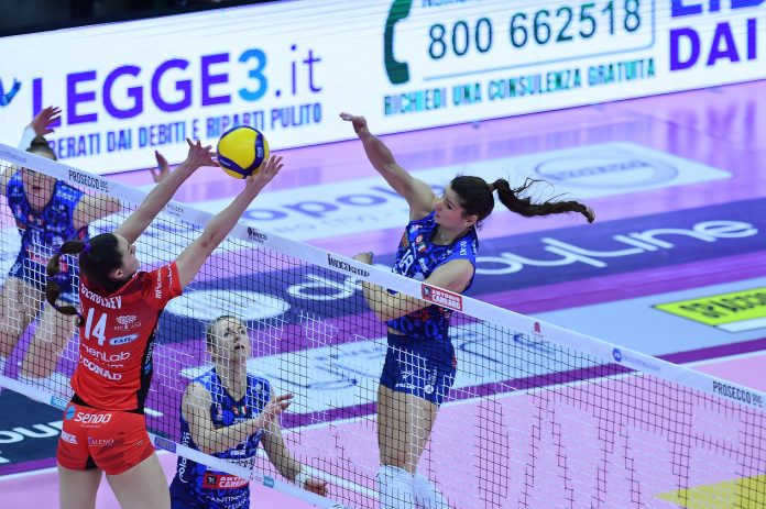 PROSECCO DOC IMOCO CONEGLIANO: Gabi 12, Zhu 8, Seki, Eckl 2, Haak 12, Wolosz, Adigwe 8, Chirichella 7, Bardaro, De Gennaro (L1). N.e.: Lubian, Lanier, Lukasik, Bozza (L2). All.: Santarelli. Ass.: Barbato