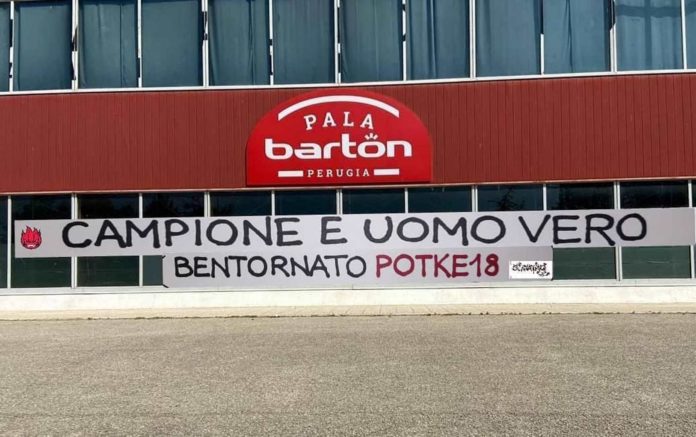 Proprio i Sirmaniaci lo hanno accolto lasciando uno striscione inequivocabile all’esterno del palazzetto perugino recante questa scritta: