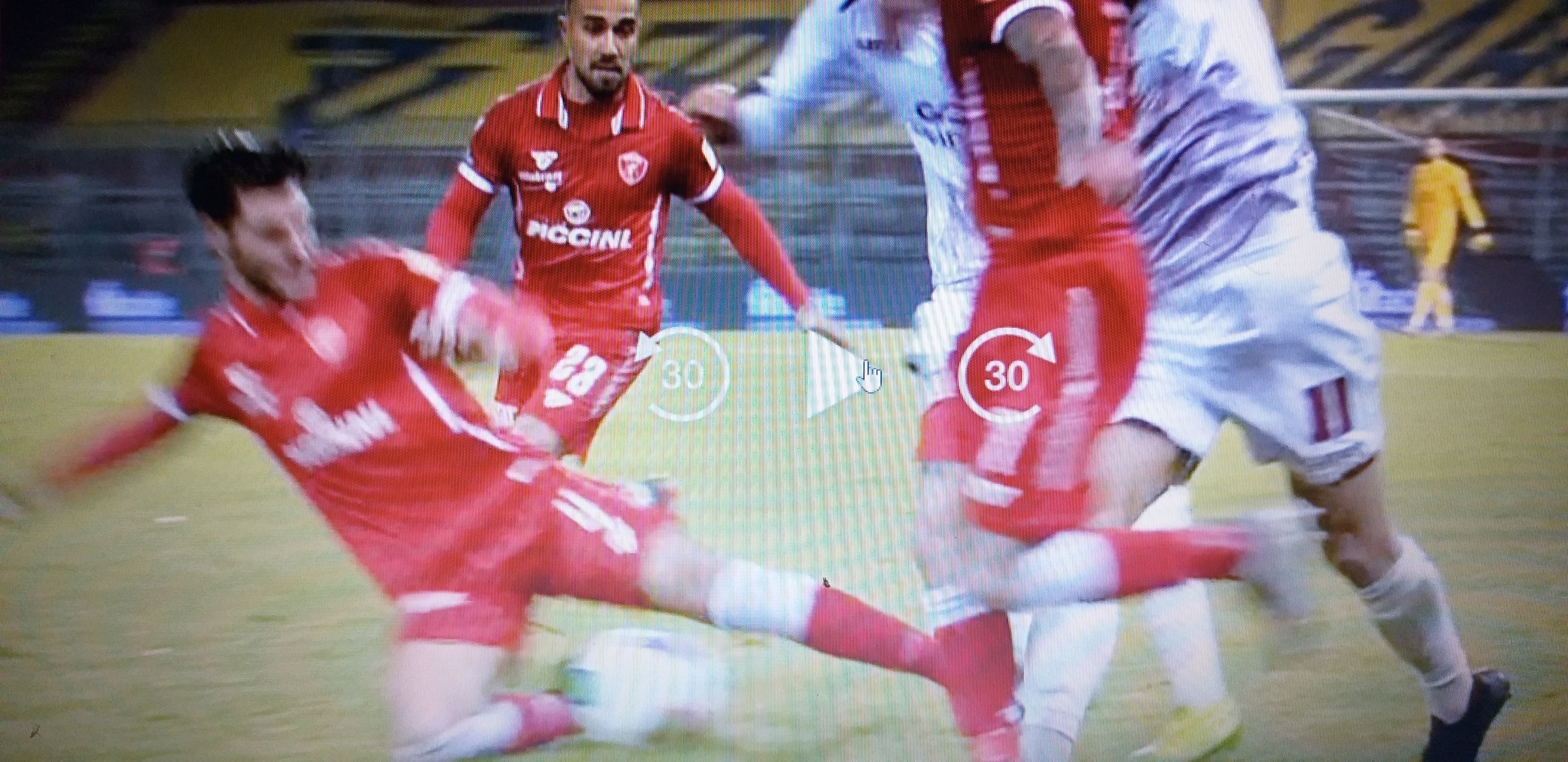 Carraro merita l’espulsione per un brutto fallo al 76 minuto: l’arbitro Prontera sbaglia e estrae solo il giallo. L’intervento è fuori tempo e rischia di ledere l’integrità fisica dell’avversario. Errore grave anche non ammonire Murilo del Livorno per un duro intervento su Falzerano. Buona invece la prestazione dei suoi collaboratori, senza errori degni di nota.
