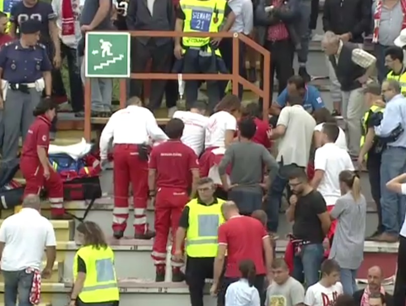 Il “Renato Curi” ancora teatro di un dramma. Durante il derby tra Perugia e Ternana un tifoso biancorosso, presente nel settore gradinata, è stato colto da un malore. La notizia ha fatto il giro dello stadio e i supporter della Nord hanno chiesto la sospensione della partita. L’arbitro Ghersini ha fermato la momentaneamente, per poi riprenderla. Le due squadre, si sono accordate per finirla lì e così il direttore di gara ha chiuso anticipatamente la contesa, senza lasciar svolgere gli otto minuti di recupero. Dal “Curi” arrivano notizie frammentarie, ma secondo indiscrezioni sarebbero andati vani i tentativi di rianimare il tifoso.