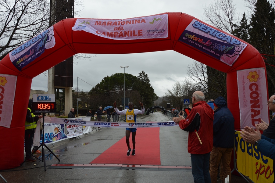 Sono stati 411 gli atleti partecipanti alla 28esima Maratonina del Campanile che, come da programma, è partita domenica 5 febbraio alle 9.30 da via Pietro Cestelllini a Ponte San Giovanni di Perugia. A tagliare per primo il traguardo, percorsi i 20 chilometri previsti dalla gara, il keniota Daniel Kipkirui Ngeno, tesserato con l’associazione Atletica Libertas Orvieto (1h03’58”) seguito da Carmine Buccilli (1h04’32”) dell’Atletica Casone Noceto e Tarik Marhnaoui (1h05’25”) per Romatletica Salaria village. Podio femminile tutto perugino, invece, con Costanza Martinetti (1h13’51”) dell’atletica Libertas Arcs Cus Perugia, Silvia Tamburi (1h16’58”) e Paola Garinei (1h19’36”) entrambe dell’Atletica Avis Perugia. Se la pioggia ha lambito parte della gara, organizzata dall’associazione sportiva dilettantistica Podistica Volumnia Sericap, la stessa non ha scoraggiato le circa cento persone impegnate in ‘Correre per la vita’, la camminata non competitiva benefica di 6,2 chilometri coordinata dall’Associazione Avanti tutta Onlus, con in testa il suo presidente Leonardo Cenci. Parte degli introiti della maratonina saranno destinati, infatti, alla onlus perugina (la restante parte alla Caritas di Ponte San Giovanni).