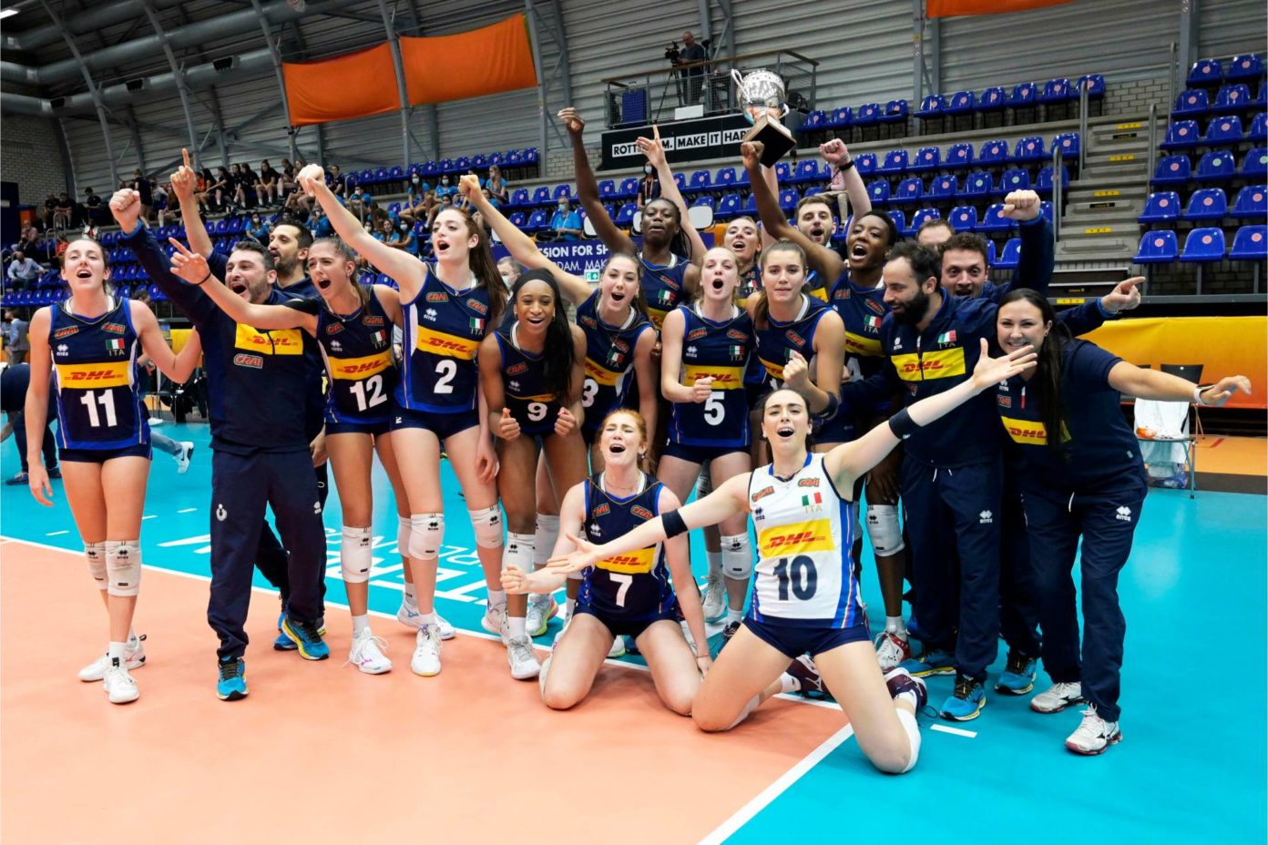 L’Italia under 20 di pallavolo è campione del mondo. A Rotterdam le ragazze del commissario tecnico Massimo Bellano si impongono sulla Serbia vincendo per 3-0 (25-18; 25-20; 25-23) in una finale a senso unico e salendo così sul gradino più alto del podio dieci anni dopo il successo di Lima sotto la guida di Marco Mencarelli (allora in campo, tra le altre, c’era anche una giovanissima Valentina Diouf, n.d.r.).