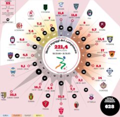 Il club che “spende” di più? Il Parma con 32,5 milioni, seguito da Monza (21,3) e Benevento (17).
