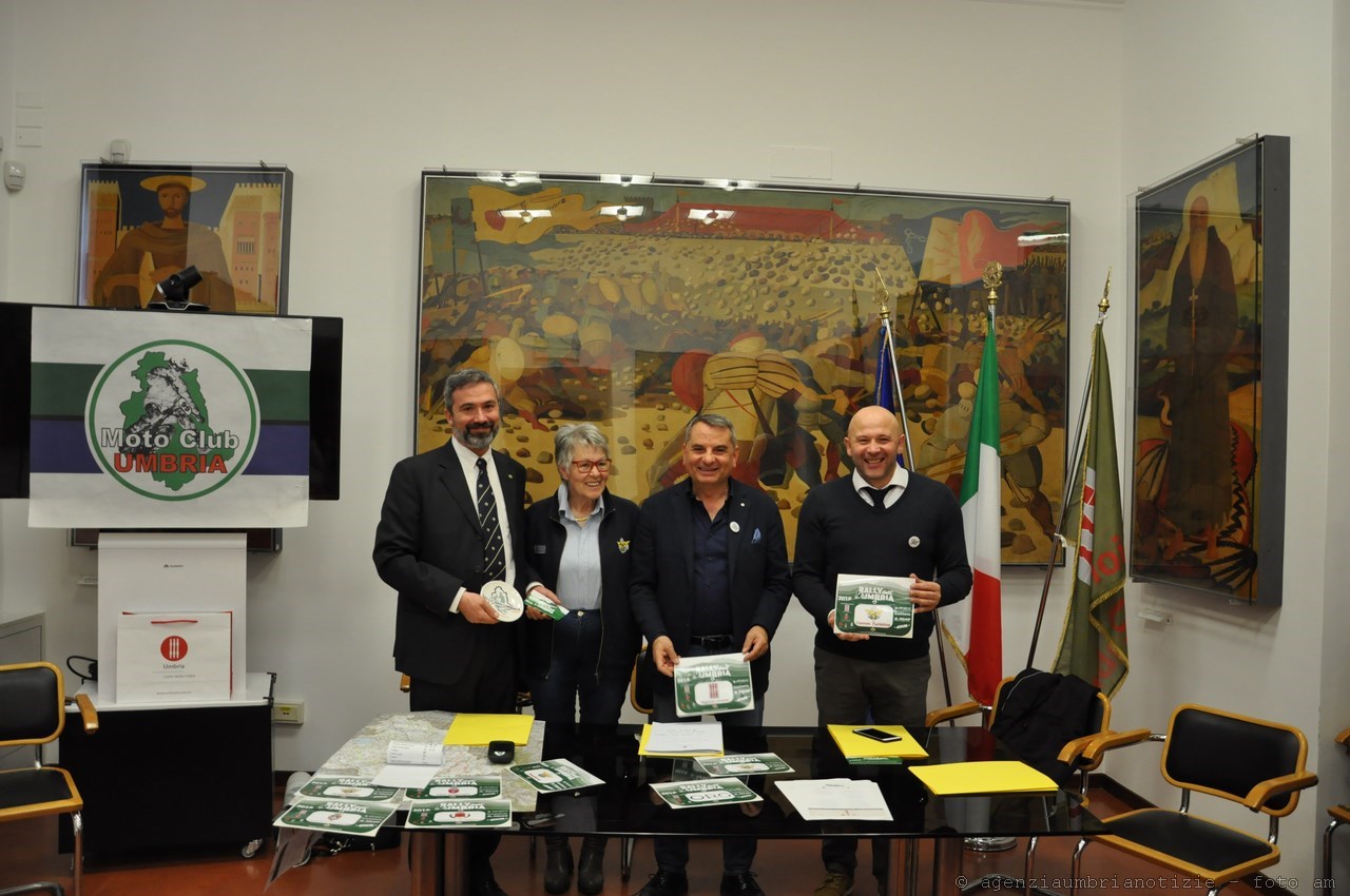 Dal 19 al 22 aprile 150 motociclisti saranno in Umbria per partecipare al settimo Rally dell’Umbria, organizzato dal Moto Club Umbria, evento non competitivo che toccherà i territori di 36 comuni alla scoperta di paesaggi e di luoghi meno conosciuti della regione. Partenza e arrivo da Perugia, con tappe venerdì 20 a Pietralunga, sabato 21 a Poggiodomo e domenica 22 in vetta al Montarale, la cima più elevata intorno al lago Trasimeno, con iniziative che coinvolgeranno cittadini e turisti. Il programma del Rally dell’Umbria, che si avvale tra gli altri del patrocinio della Regione Umbria, è stato illustrato stamattina a Palazzo Donini, alla presenza del vicepresidente della Regione Umbria con delega a Turismo e Sport Fabio Paparelli, dal presidente del Moto Club Umbria Filippo Ceccucci, dal presidente della Commissione turistica nazionale della Federazione motociclistica italiana Rocco Lopardo e dalla presidente del Comitato regionale Umbria della Federazione motociclistica italiana Mara Colligiani.