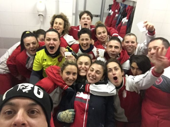 IL MATCH – La squadra di mister Ferranti parte bene e trova il gol del vantaggio dopo dieci minuti grazie ad un’azione ben orchestrata tra Marchesi e compagne e finalizzata da Natalizi con un bel tiro. Le ternane cercano invano il pareggio, sbattendo sul numero uno Roscini in collaborazione con una buona difesa che contribuisce a ridurre al minimo i rischi. Al 25esimo c’è però l’1-1 ad opera di Grilli. Le perugine sono però brave a non subire il contraccolpo: Roccaforte sorprende su rimessa il portiere e complice una deviazione riporta avanti la Grifo. Nella ripresa il Clt alza la pressione mettendo a dura prova le biancorosse che però in contropiede riescono a portare a tre le marcature grazie a bomber Marchesi. Le padrone di casa provano ad accorciare con Madonna e Nenna, ma la determinazione di Roscini e compagne permette alla Grifo Perugia di mantenere il risultato e di portare a casa l’intera posta in palio e la soddisfazione per aver trionfato nel derby contro le rivali di regione.