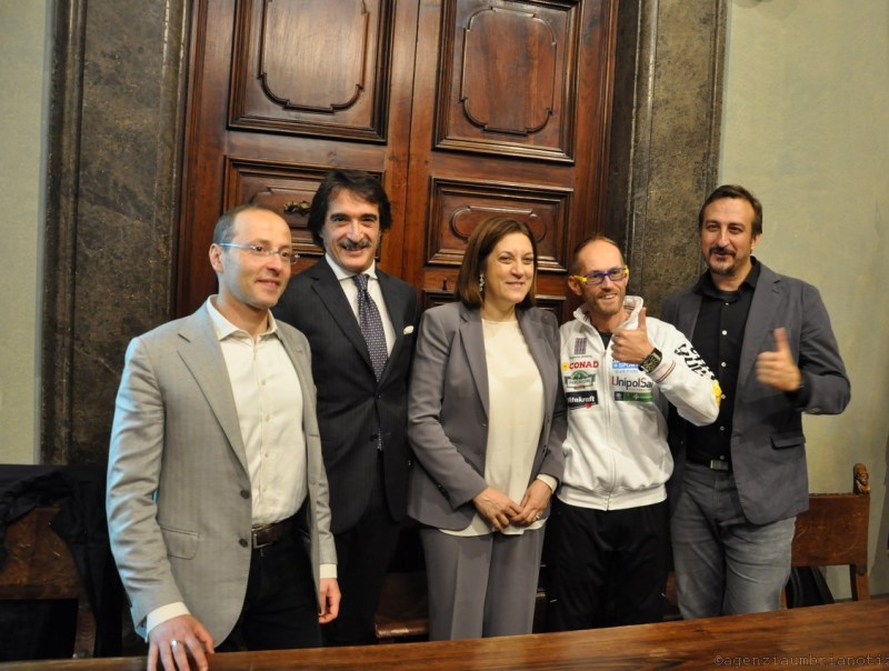 Correrà con il simbolo dei Tre Ceri sul petto Leonardo Cenci alla New York Marathon del 6 novembre: perché per lui, che sarà il primo italiano a correre a NY con un tumore in atto, essere umbro è un valore aggiunto. L’annuncio ufficiale della partecipazione del fondatore di “Avanti Tutta” alla Maratona è stato dato stamani a Perugia nel corso di una conferenza stampa che si è tenuta nella sede della Giunta regionale di Palazzo Donini alla presenza della presidente della Regione Umbria, Catiuscia Marini, del presidente del Consiglio comunale di Perugia, Leonardo Varasano, e del questore di Perugia, Francesco Messina. E’ intervenuto l’inviato della trasmissione televisiva “Mi manda Raitre”, Mauro Casciari, che sarà al fianco di Leonardo anche in questa entusiasmante avventura. “A 39 anni nell’agosto del 2012 mi fu diagnosticato un cancro – ha raccontato Leonardo – e, nonostante i medici mi abbiano comunicato che avrei avuto al massimo 4 o 6 mesi di vita, grazie alle cure che ho ricevuto nel servizio sanitario regionale sono riuscito, dopo 4 anni, a ripropormi l’obiettivo di partecipare alla maratona. Sarò il primo italiano della storia e, da quanto mi risulta, la seconda persona al mondo di sempre a correre una maratona con il cancro in atto – ha aggiunto Leonardo –  Mi sto allenando al meglio da mesi per riportare un buon risultato e, il massimo per me, sarebbe battere il record di 5 ore e 32 minuti di Fred Lebow, il fondatore della maratona di New York, che corse con un tumore al cervello” Dopo aver ringraziato i medici e in particolare l’oncologa che lo segue Chiara Bennati, il direttore dell’azienda ospedaliera di Perugia, Emilio Duca, il suo allenatore, Umberto Risi, Gabriele Pampanelli per lo splendido video che racconta la sua sfida e tutti gli sponsor che lo hanno sostenuto per correre a New York, Cenci ha evidenziato che “con la partecipazione alla maratona vuole lanciare il messaggio che lo sport fa bene in generale e fa bene, ancor di più, anche alle persone che affrontano una malattia, perché rappresenta una sorta di medicina naturale che aiuta a vivere una vita migliore. In questo – ha concluso sorridendo – mi sento un testimonial di pubblica utilità”.