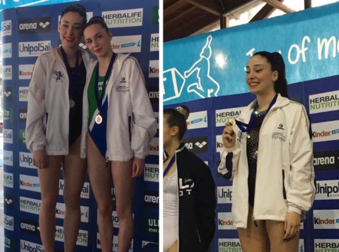 La Gryphus Sporting Club Perugia fa il pieno di medaglie nel nuoto sincronizzato. Ai campionati nazionali Fin Propaganda di Cremona, le ragazze perugine non deludono e riportano a casa un oro ed un bronzo nel “solo” grazie ad Ines Grasselli e Giorgia Cammerieri ed un argento nel “doppio” grazie ancora a Grasselli in coppia con Elisabetta Bertinelli. Una prestazione da incorniciare per le atlete allenate da Michela Briziarelli che dimostrano ancora una volta come il settore del nuoto sincronizzato della Gryphus sia arrivato ad alti livelli in campo nazionale. Da sottolineare la prestazione in duo di Bertinelli e Grasselli, in gara contro ben altre 49 coppie: le due ragazze hanno conquistato la finale partendo dal quarto posto e recuperando così due posizioni preziosissime per il conseguimento del risultato finale.