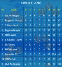Gryphus ora quarta con 18 punti a tre lunghezze da Osimo e Pescara. Ma soprattutto la prima inseguitrice dei perugini ora dista 6 punti ed è proprio la Pesarese assieme al San Giovanni Teatino.