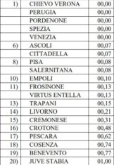 In tale graduatoria, dove il Grifo è primo in ex aequo con Chievo, Pordenone, Spezia e Venezia, si tiene conto esclusivamente dei provvedimenti disciplinari adottati dal Giudice sportivo per quanto riguarda il comportamento dei tifosi.