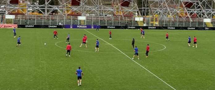 Il Perugia ha sostenuto l’ultimo allenamento settimanale. Nella mattinata di sabato 21 febbraio i grifoni hanno lavorato presso il centro sportivo ‘Paolo Rossi’. Tedesco ha potuto contare sull’intera rosa a disposizione, con alcuni giocatori che hanno alternato i carichi per evitare problematiche di natura fisica. Il neo preparatore Sdringola sta intensificando principalmente l’attività dei nuovi, ancora non al top della condizione. Su tutti Valerio Verre che è reduce da una lunga attività. C’è ottimismo tuttavia sulla possibilità di metterlo a punto in vista della prossima sfida interna che vedrà il Perugia, sabato 28 febbraio (ore 17.30), affrontare il Pineto. C’è fiducia anche sulla piena disponibilità di Calapai, dopo la lunga assenza, come quella di Tumbarello. Il Perugia oggi osserverà una giornata di riposo e da lunedì pomeriggio tornerà ad allenarsi per preparare al meglio la suddetta sfida contro gli abruzzesi. Il programma poi prevede una doppia seduta per martedì, due pomeridiane tra mercoledì e giovedì, mentre venerdì la rifinitura si terrà la mattina. Cinque giorni per mettere a punto il modulo (4-3-1-2) e la formazione titolare, dove non ci sarà lo squalificato Riccardi. Se tornerà Calapai a destra, è possibile che Tedesco si affiderà alla coppia centrale Tozzuolo – Angella con Dell’Orco a sinistra. Diversamente Tozzuolo e Dell’Orco saranno i terzini, con Stramaccioni al fianco del capitano. In diffida e a rischio squalifica l’attaccante Nepi e lo stesso Stramaccioni.