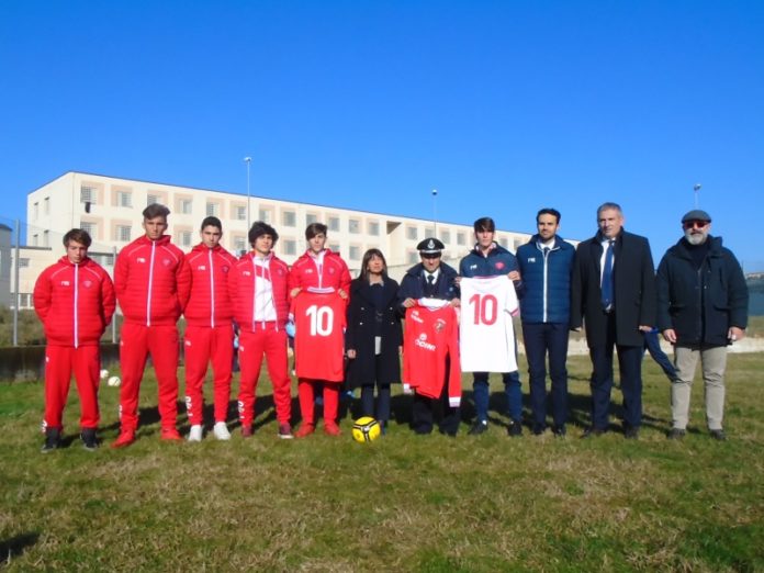 Una partita di calcio per sostenere la Campagna sui diritti dei bambini figli dei detenuti. È su questa tematica che si è basata la visita delle squadre del settore giovanile agonistico AC Perugia Calcio all’interno del Nuovo Complesso Perugia Capanne. La delegazione biancorossa composta dal responsabile del settore giovanile Giovanni Guerri, dal responsabile organizzativo settore giovanile Francesco Gaudenzi, l’ufficio stampa e dai giovani calciatori Mattia Vicaroni (Primavera), Tommaso Settimi (Under 17) Nicola Pietrangeli (Under 17), Filippo Ranocchia (Under 16), Diego Stramaccioni (Under 16) e Filippo Fuscagni (Under 15) ha avuto la possibilità di visitare le strutture principali che compongono il Complesso carcerario. Dalla sala regia dove vengono costantemente controllati i detenuti, fino all’area di svago, alla palestra e alla cucina in cui ogni giorno si prepara da mangiare per circa 320 persone.