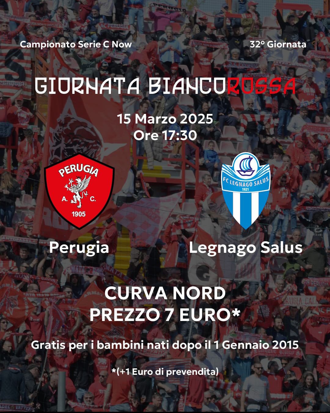 Il Perugia inizia a guardare non solo alla classifica che, dopo il successo di ieri contro la Torres, può essere vista in maniera totalmente diversa, ma anche ai propri tifosi. In occasione della sfida casalinga contro il Legnago Salus di sabato 15 marzo (ore 17.30), infatti, è stata organizzata la Giornata Biancorossa. Per l’occasione, sarà possibile quindi acquistare un biglietto per la Curva Nord a 7€ (più 1€ di prevendita). Inoltre, ci saranno anche delle agevolazioni per i giovani: i bambini nati dopo il 1 gennaio 2015 potranno entrare allo stadio in maniera totalmente gratuita. Un’iniziativa che – speriamo – sia solo la prima e che faccia riavvicinare più tifosi possibili allo stadio, in modo particolare i più piccoli, in vista del finale di stagione e della prossima stagione.