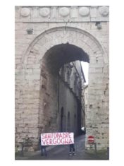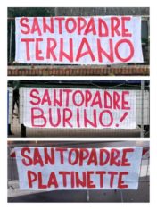 Si va dagli ormai consueti “Santopadre vattene” e “Santopadre vergogna” fino a scritte ironiche e altre più ‘pesanti’.