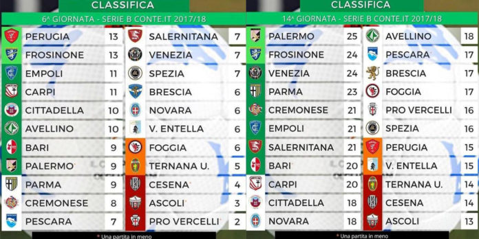 Il confronto tra la classifica della sesta giornata del campionato di serie B e quella della quattordicesima è veramente impietoso per il Perugia.