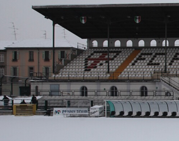 "Piola" ancora innevato: si spera nella pioggia. Lo stadio di Vercelli è ancora coperto dalla neve, le previsioni indicano rischio di altre fioccate nella mattina di sabato