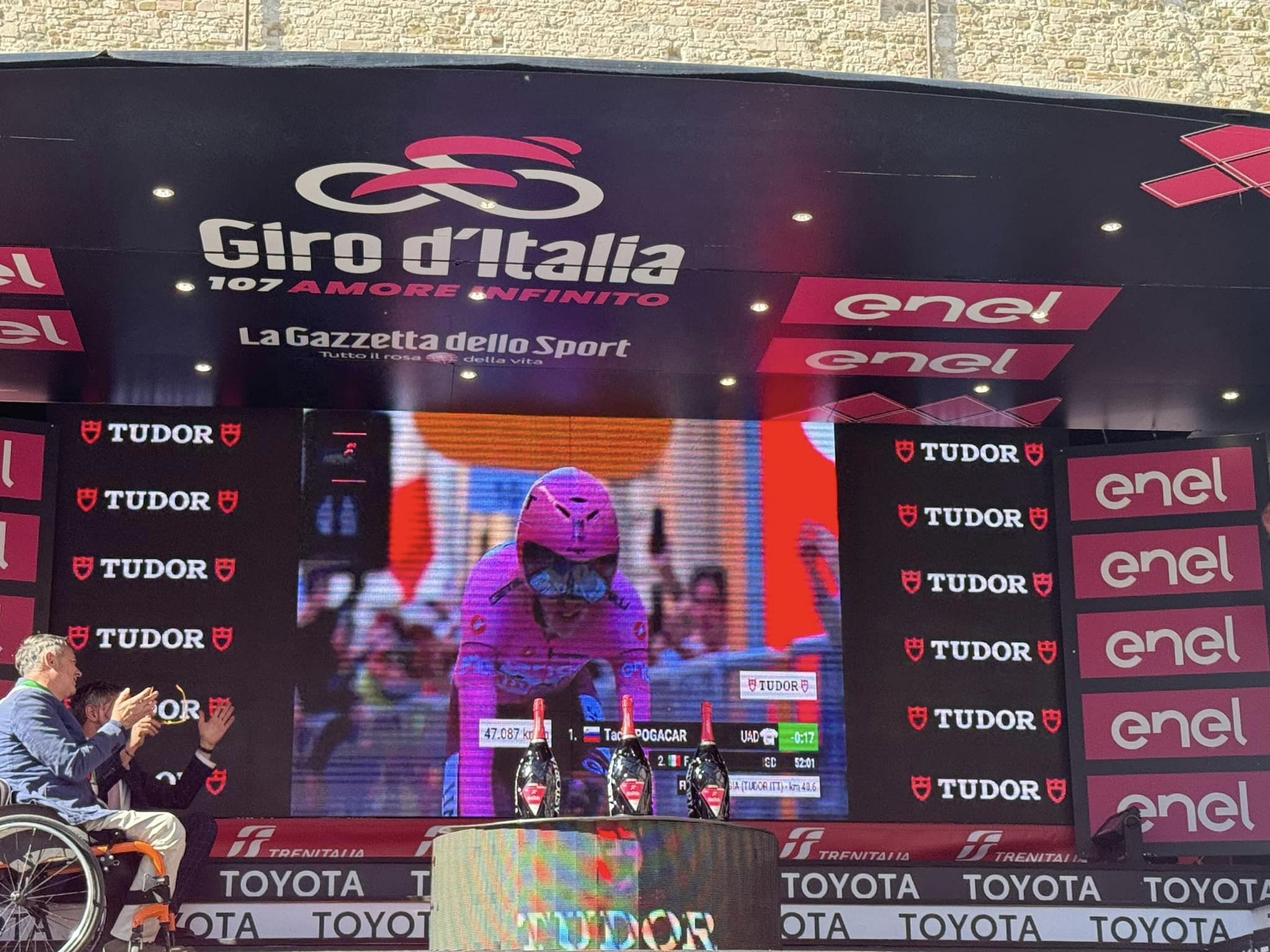 Lo sloveno si scatena sull’ascesa verso Perugia, come aveva fatto al Tour 2020 contro Roglic, e infligge un’amarissima sconfitta a Ganna: dà 1’04” all’azzurro in 6,6 km. Pogacar non lascia niente e tra l’incitamento di una folla caldissima si va a prendere la sua seconda vittoria al Giro 2024, dopo quella sulla salita di Oropa: il successo numero 72 della carriera.