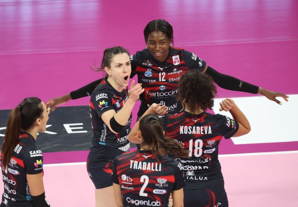 Bartoccini Fortinfissi Perugia: Ricci – Montano, Bartolini – Cogliandro, Traballi – Kosareva, Sirressi (libero). All.: Giovi. Ass.: Marangi