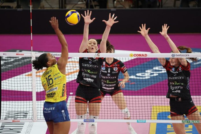 Savino Del Bene Scandicci: Ognjenovic – Antropova, Graziani – Nwakalor, Herbots – Ruddins, Castillo (L). All.: Gaspari. Ass.: Kantor