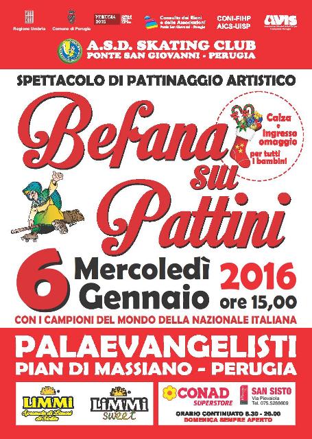 Per chi ama la danza, lo sport e l’arte il 6 gennaio ha l’occasione di vedere al Palaevangelisti di Perugia la “Befana sui Pattini”, ossia la possibilità di assistere all’ evento dell’anno di skating. Uno spettacolo dove saranno presenti i più bravi pattinatori regionali, nazionali ed internazionali i quali metteranno in scena coreografie artistiche davvero appassionanti e coinvolgenti. La manifestazione si svolge a Perugia ed inizierà alle ore 15. L’organizzatore è l’Asd Skating Club Ponte San Giovanni del presidente Cagliesi, una società che è la fucina dei migliori talenti nazionali della disciplina agonistica e che conta fra i suoi diversi successi sportivi il titolo di campione europeo e quello mondiale della categoria.