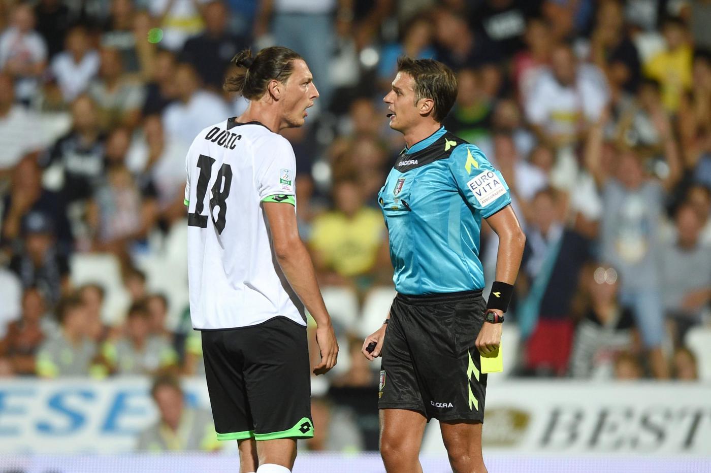 Foto LaPresse/Massimo Paolone29/08/2016 Cesena ( Italia)Sport CalcioCesena vs Perugia - Campionato di calcio Serie B ConTe.it 2016/2017 - Stadio "Orogel Stadium-Dino Manuzzi"Nella foto: Milan Djuric protesta con lo arbitro Riccardo Ros Photo LaPresse/Massimo Paolone