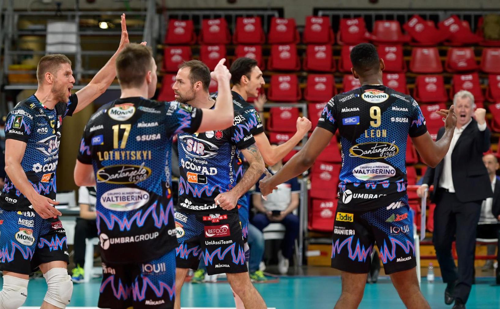 SIR SAFETY CONAD PERUGIA: Travica-Ter Horst, Russo-Solè, Leon-Plotnytskyi, Colaci libero. All.: Heynen