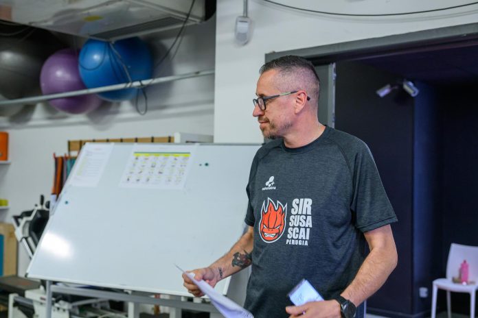 Andrea PIACENTINI durante Sir Susa Scai Perugia, primo allenamento della stagione 2025/26 presso PalaBarton Perugia IT, 13 agosto 2025. [foto_ID: 20250813_MB65545] Foto: Michele Benda